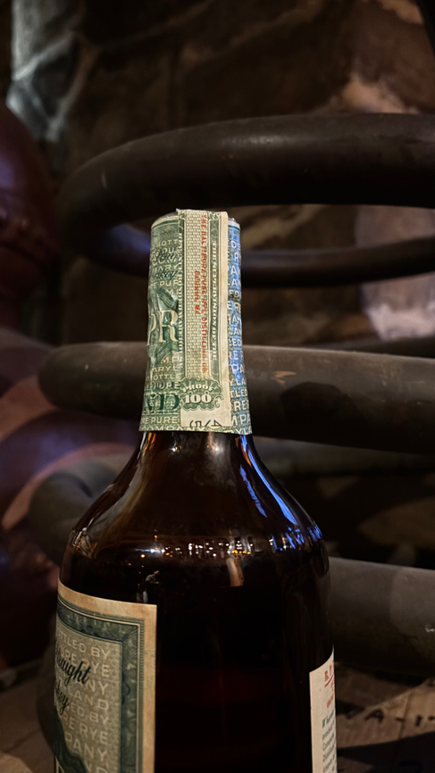 Bottle Information: Produced some time around 1910, bottled between 1914 and 1917, given The Cook & Bernheimer Company and Hannis Distillery ceased operations in 1917. Given tasters guessed at a 5 or 6 year age statement, our best guess is 1910 production and 1915 bottling, though this is just well-educated speculation. The foil cap with a metal twist wire carrying a medallion obviously also suggests the bottling date is pre-prohibition, which is confirmed by the lack of new labeling, of course. The metal medallion provided authenticity, branding, and tamper evidence, something that was coming to the forefront of producers minds as the threat of Prohibition loomed. There was another example of a similar bottling that Curt Kolcun brought that had a wax closure over the cork without any mention of Cook & Bernheimer, suggesting a 1917 or later bottling. We explored the bottle pictured.
